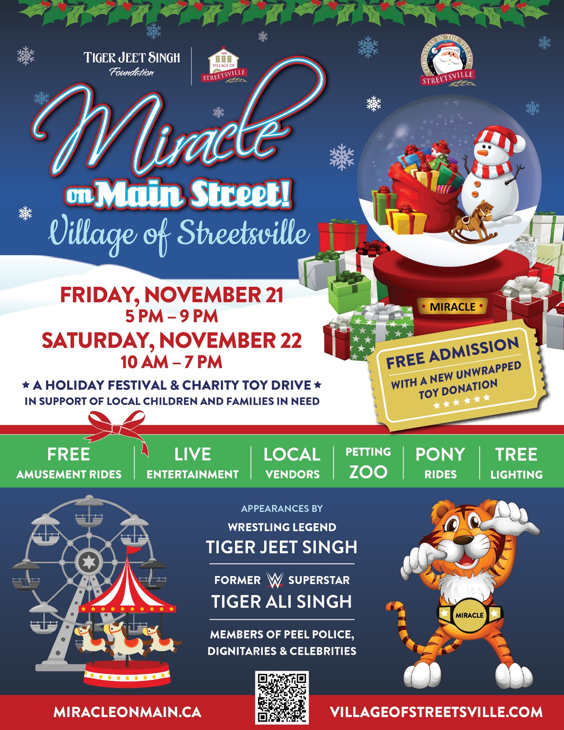 Streetsville, ON – The City of Mississauga, Downtown Streetsville BIA, in partnership with the Tiger Jeet Singh Foundation (TJSF), is excitedly preparing for its inaugural ‘Miracle on Main Street” as part of the community’s Christmas in the Village celebrations.